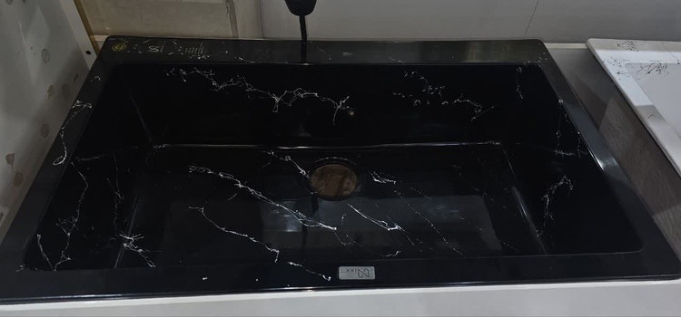 سینک 80*50 تک لگن توکار گرانیتی مشکی رگه سفید